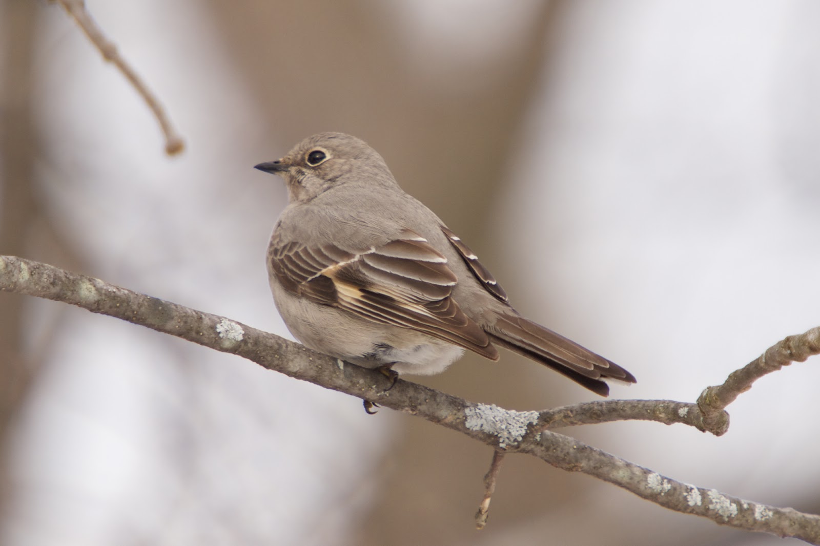 I was supposed to help with a project at Fenner Nature Center today, but it got called off at the last minute. However, after doing some unanticipated janitorial work at church, I ended up at Fenner anyway. I popped over to the area I saw the famous Townsend's Solitaire last week to see if I could get some more photos. It was about 10 degrees warmer today and it made it more bearable to hang around to shoot photos of the little guy. To my delight, the Solitaire was already there munching away on the buckthorn berries. While friendly enough to me, the Solitaire seems to have a reputation worthy of its "solitary" name. A talkative Northern Cardinal and a flock of 19 Cedar Waxwings also had their sights set on some of those berries for lunch. The Solitaire would have none of it. It did not chase off the Cardinal, but the Cedar Waxwings got an ear full and had to eat and fly. Because of the Solitaire's darting to and fro chasing the Waxwings, I did not get any video of it singing its agitated song. About the time I got my tripod moved and focused on it, off it went to scare off a Waxwing. Pretty soon all the other birds cleared out and the Solitaire settled down again.